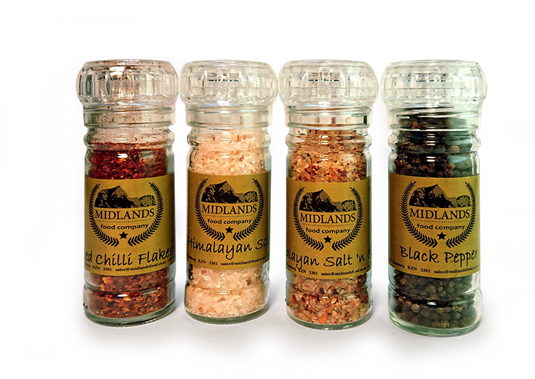 Red Chilli Flakes: A blend of sundried red chilli flakes in a glass grinder bottle – Spicy enough to get the eyes watering!